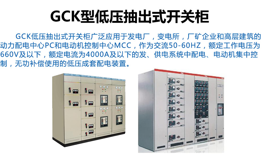 GCK-低壓抽出式開(kāi)關(guān)柜適用于發(fā)電廠、冶金、石油化工、輕工紡織、港口碼頭、大樓賓館等場(chǎng)所作為交流三相四線或五線制、電壓380V、頻率50H2電力系統(tǒng)的配電和電動(dòng)機(jī)控制之用。
