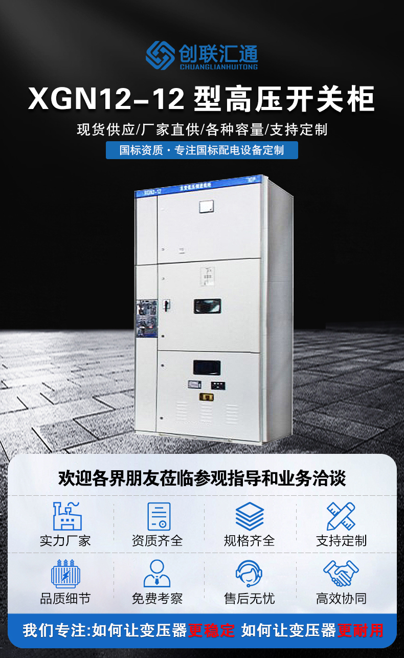 XGN2-12箱型固定式金屬封閉開(kāi)關(guān)設(shè)備用于三相交流50Hz、3.6、7.2、12kV單母線及單母線分段系統(tǒng)中作為接受與分配電能之用,特別適合于頻繁操作的室內(nèi)場(chǎng)合。